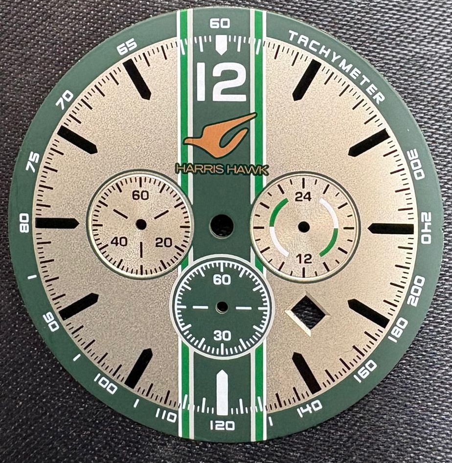 Every Harris Hawk dial begins as more than just a face — it’s the personality of the watch. We start by selecting high-grade base materials designed to withstand both time and terrain. The dial surface is then meticulously treated with texture or finishes that reflect the watch’s character — matte, sunburst, brushed metal, or multi-layered depth for chronographs.